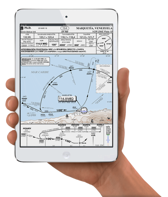 La Carta de Rutas y Aeródromos de Ph.D. se ajusta a las exigencias mínimas y normas de la OACI, están realizadas a color con una excelente calidad gráfica con una escala de 1”=30NM. |